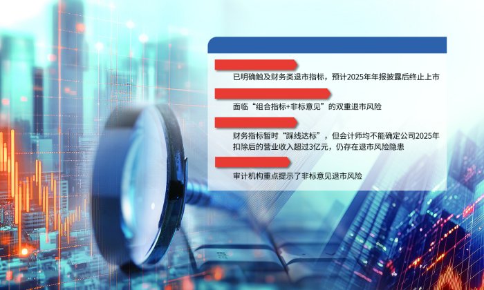 据上海证券报初步统计,近期,已有*ST观典、*ST岩石、*ST精伦、*ST春天等多家*ST公司发布公告,提示投资者关注退市风险。其中,*ST岩石、*ST精伦已明确触及财务类退市指标,预计2025年年报披露后终止上市。*ST太和等公司的财务指标则暂时“踩线达标”,但会计师均不能确定其2025年扣除后的营业收入超过3亿元,仍存在退市风险隐患。